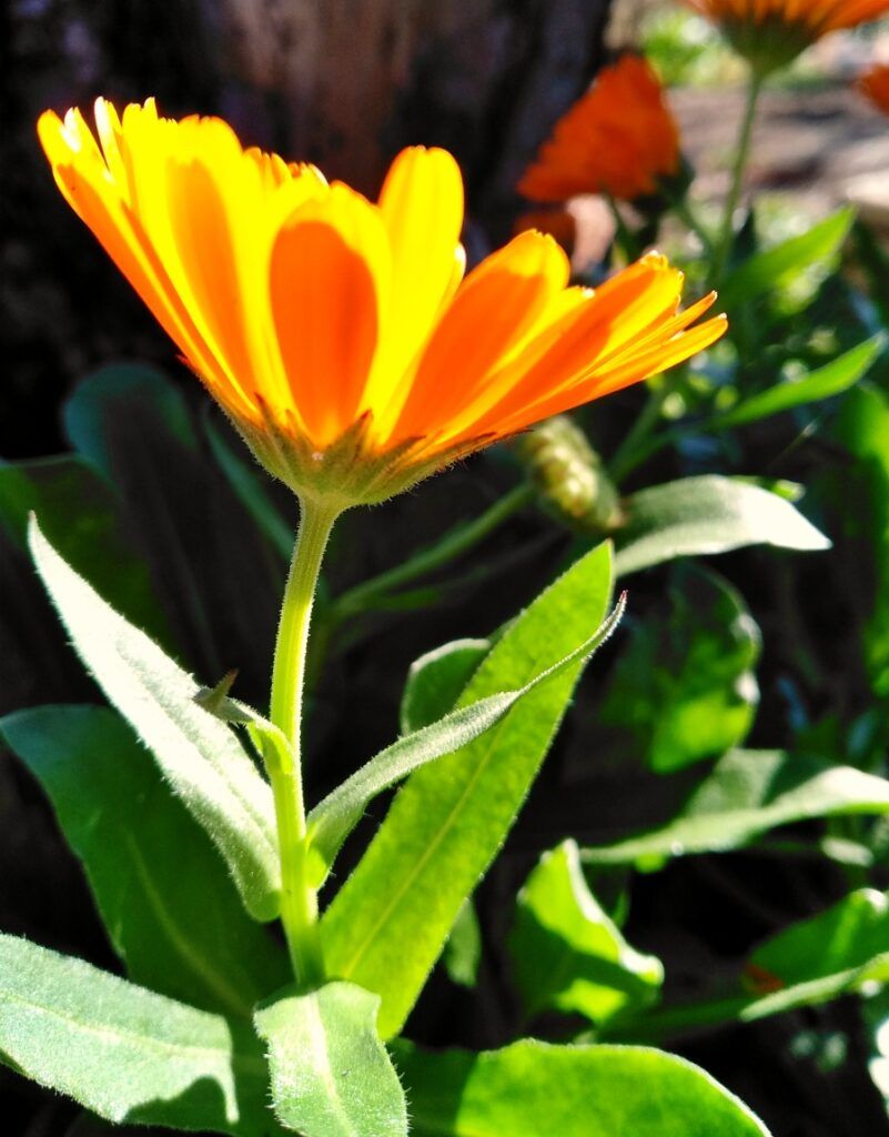 Marygold το όνομά της στα αγγλικά και αφιερωμένη στην Παρθένο Μαρία. Calendula officinalis το επιστημονικό της όνομα προερχόμενο πιθανότατα από τους Ρωμαίους επειδή άνθιζε κάθε πρωτομηνιά, δηλαδή στις Καλένδες. Είναι μονοετής πόα ύψους 30-50cm με λογχοειδή, χνουδωτά, μεγάλα, στενά στη βάση και πλατύτερα στις άκρες, πράσινα φύλλα και μεγάλα, κίτρινα ή πορτοκαλί άνθη σε σχήμα μαργαρίτας.